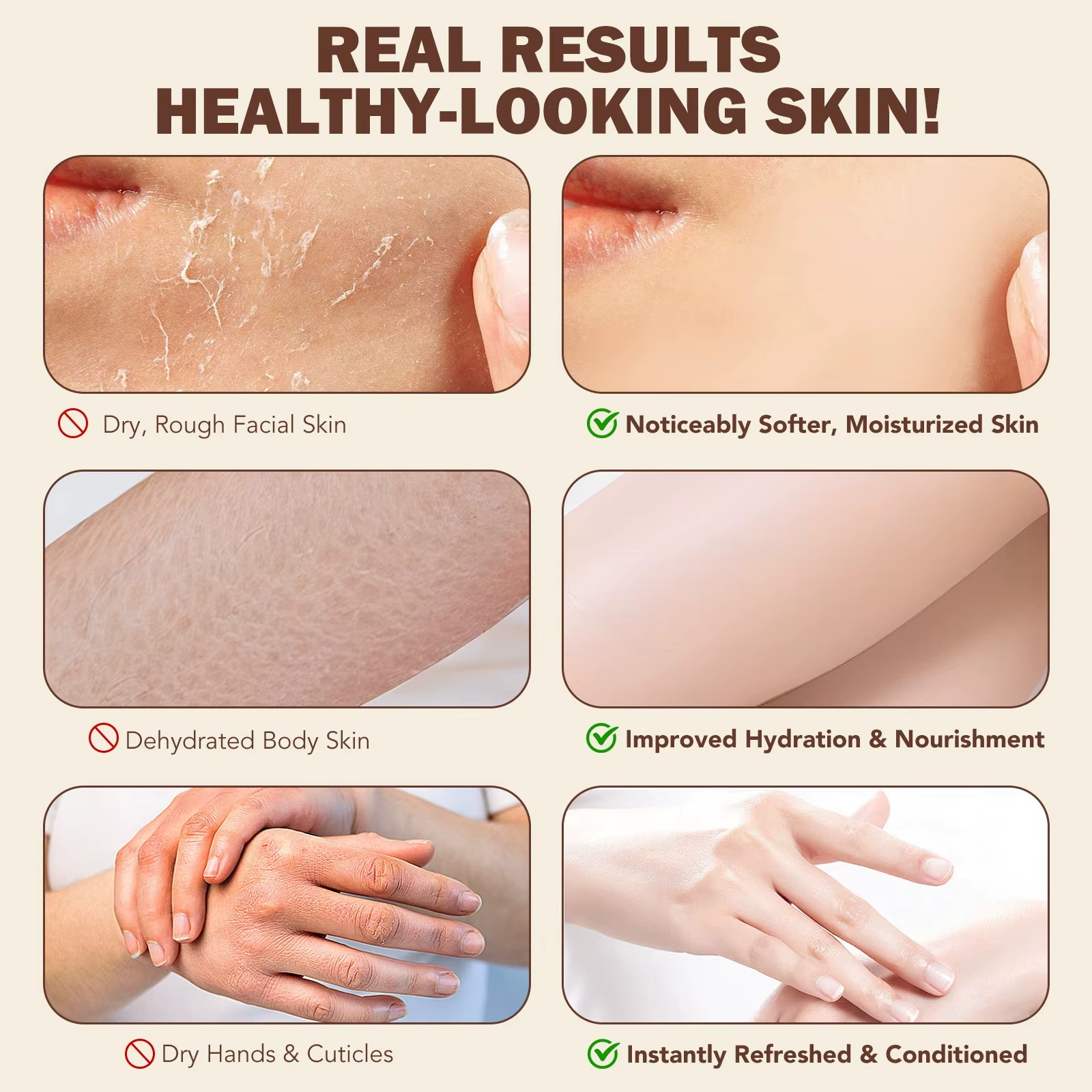 saw visible improvement in dry or irritated areas like hands, elbows, and face.